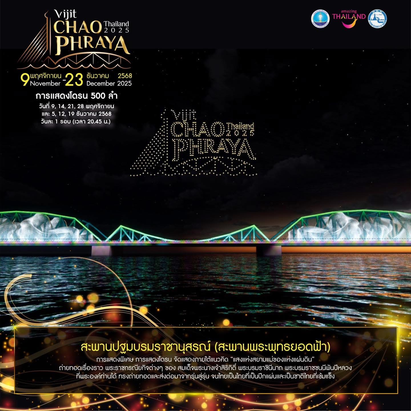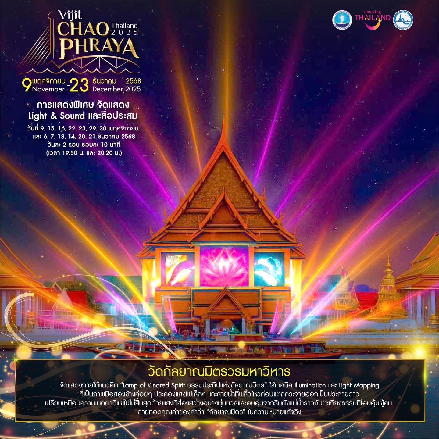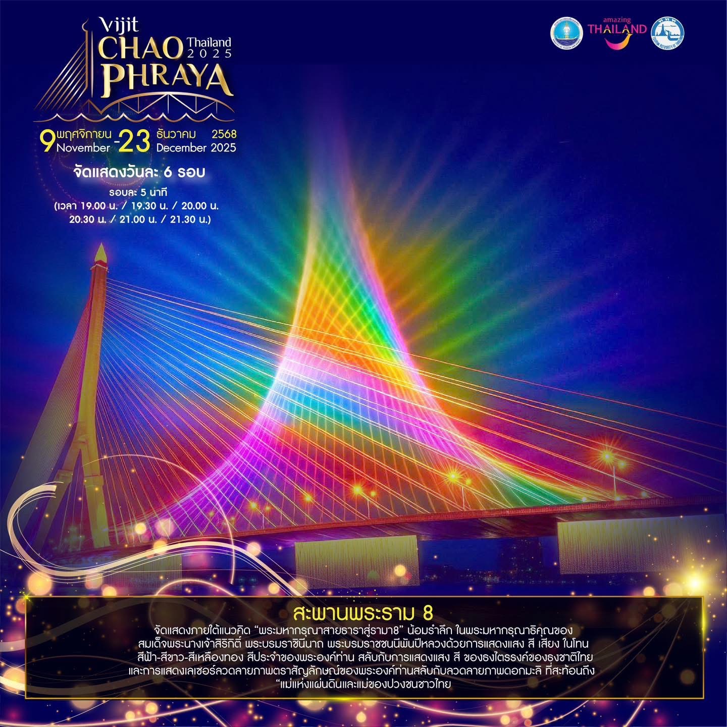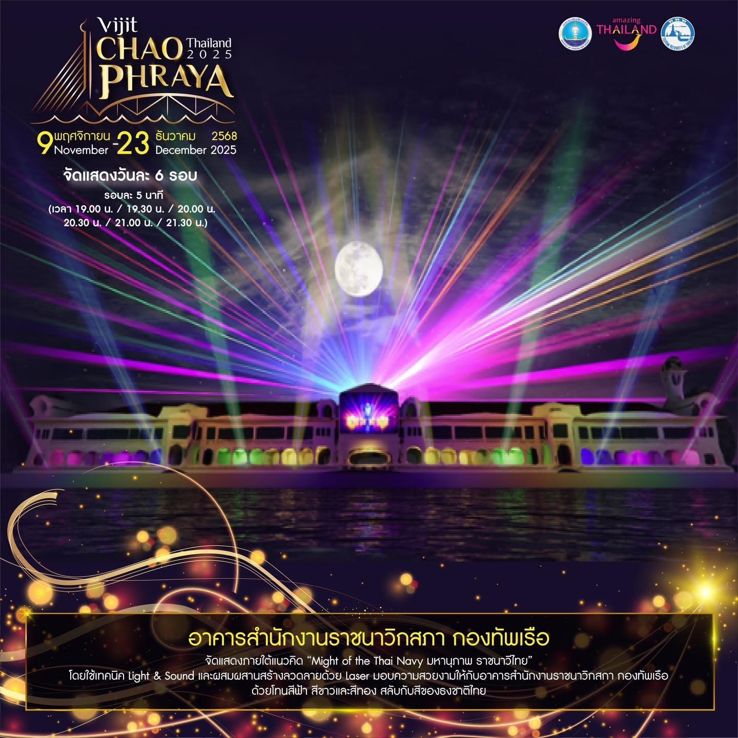 จองด่วน!! ล่องเรือชมงาน ‘Vijit Chao Phraya 2025’ มหาปรากฏการณ์ แสงแห่งสยามแม่ของแผ่นดิน ริมแม่น้ำเจ้าพระยา สุดยิ่งใหญ่อลังการกว่าที่เคย จัดโดย การท่องเที่ยวแห่งประเทศไทย (ททท.)