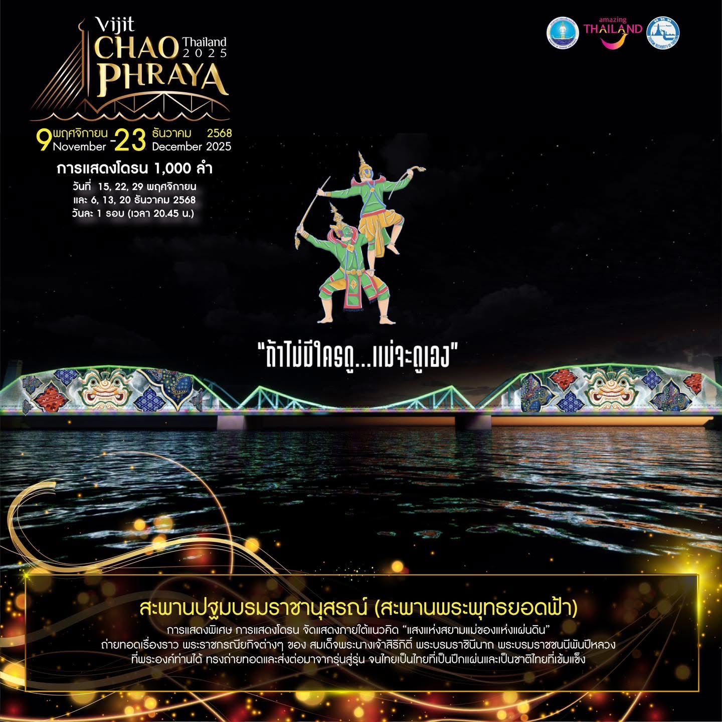 ตระการตากับการแสดงมากมาย บริเวณริมแม่น้ำเจ้าพระยา "แสดงตลอดทุกวัน" ตั้งแต่ วันที่ 9 พฤศจิกายน – 23 ธันวาคม 2568 รับประกันล่องเรือชมงานวิจิตรเจ้าพระยา ได้ประสบการณ์ที่สุดประทับแบบหาที่ไหนไม่ได้แน่ ๆ ห้ามพลาดโดยเด็ดขาดเลยนะคะ 1 ปีมีแค่ครั้งเดียว